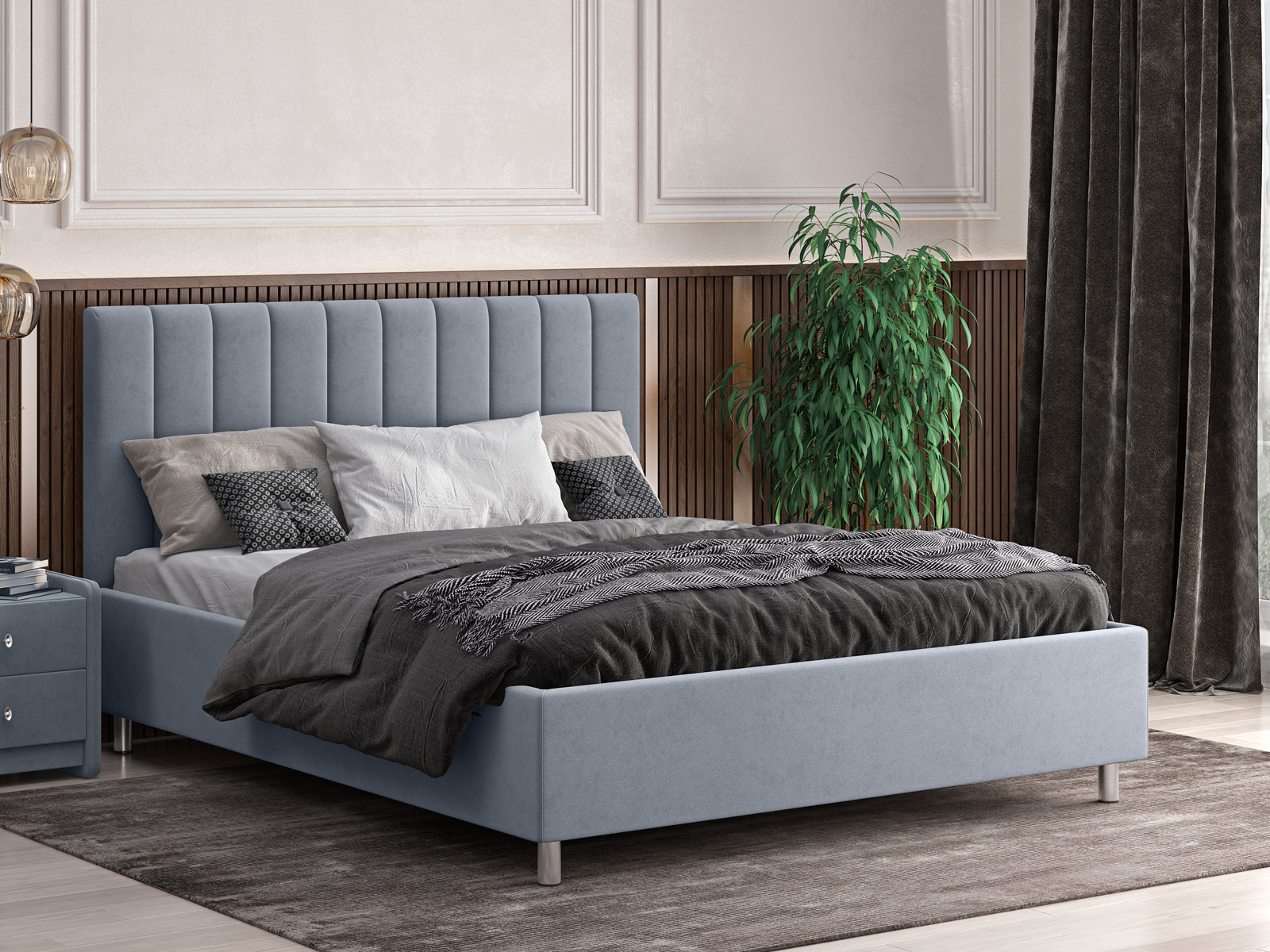 В комплектации с подъемным механизмом кровать имеет вместительный бельевой короб.